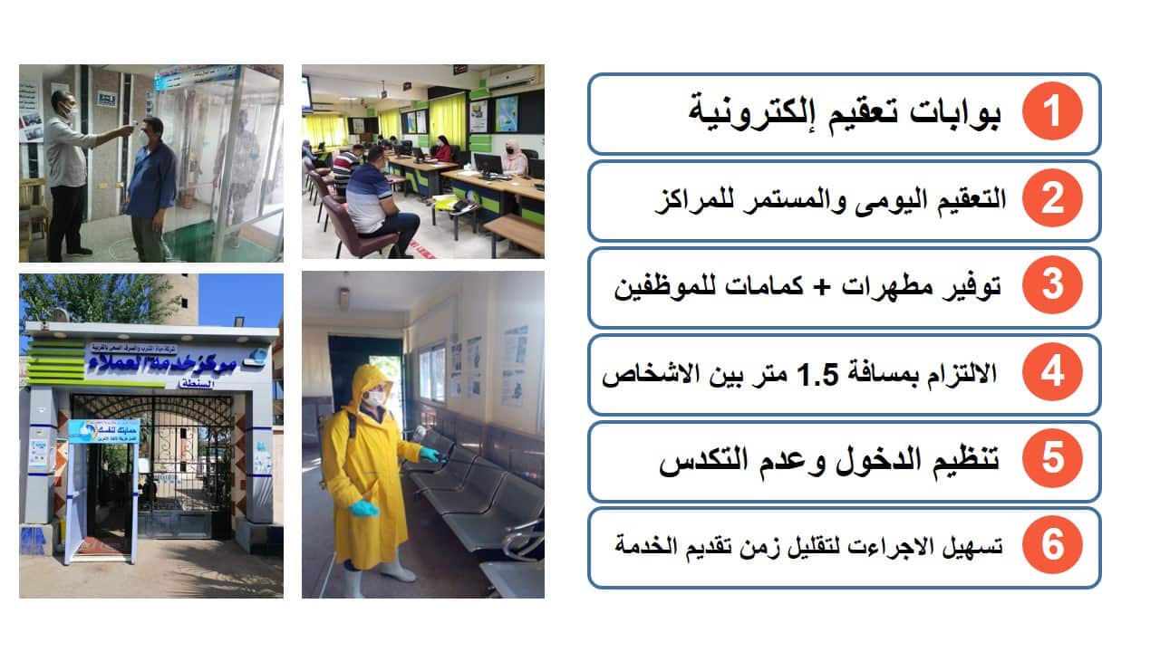 وشدد على التزام العاملين باتباع كافة الإجراءات الوقائية داخل مراكز خدمة العملاء، وناشد المواطنين المتعاملين بمراكز خدمة العملاء بالالتزام بجميع الاجراءات الاحترازية والوقائية حرصاً على صحتهم وسلامتهم وذلك باتباع التالى: (ارتداء الكمامة الطبية ـ الحفاظ على مسافة التباعد الآمنة ـ الالتزام بعدم التكدس داخل المراكز).