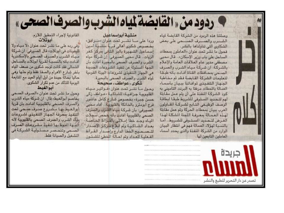 آخر كلام : ردود من الشركة القابضة لمياه الشرب والصرف الصحي .