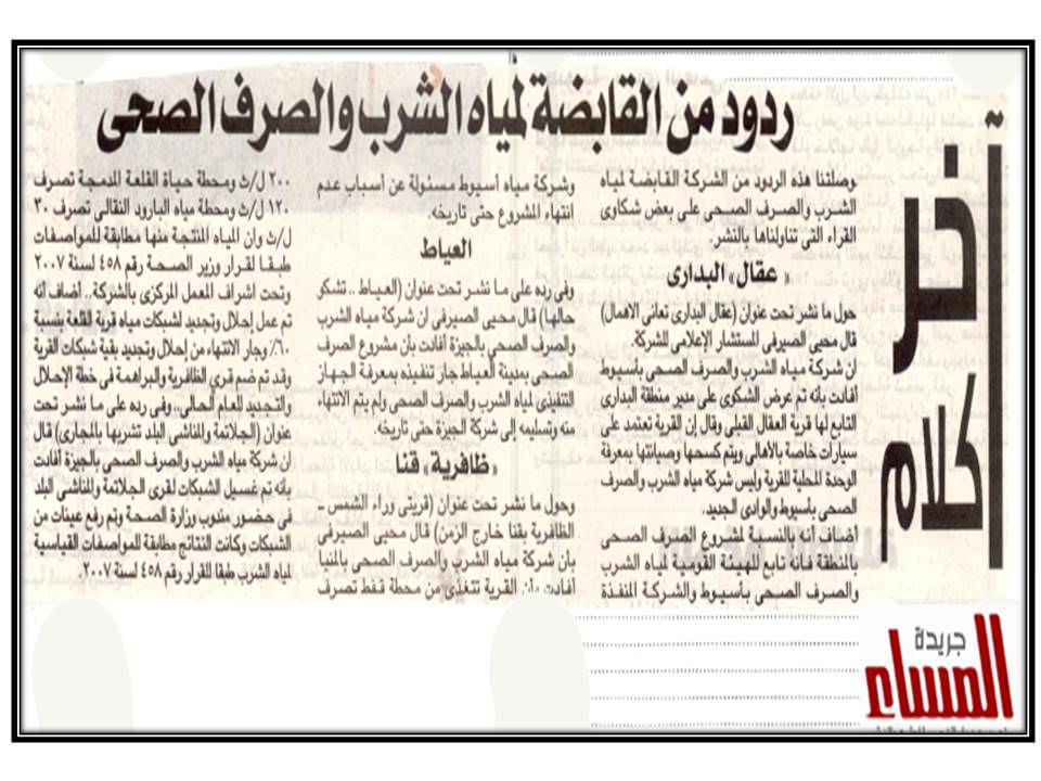 آخر كلام : ردود من الشركة القابضة لمياه الشرب والصرف الصحي ………..
