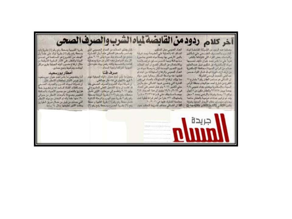 آخر كلام -: ردود من الشركة القابضة لمياه الشرب والصرف الصحي ….