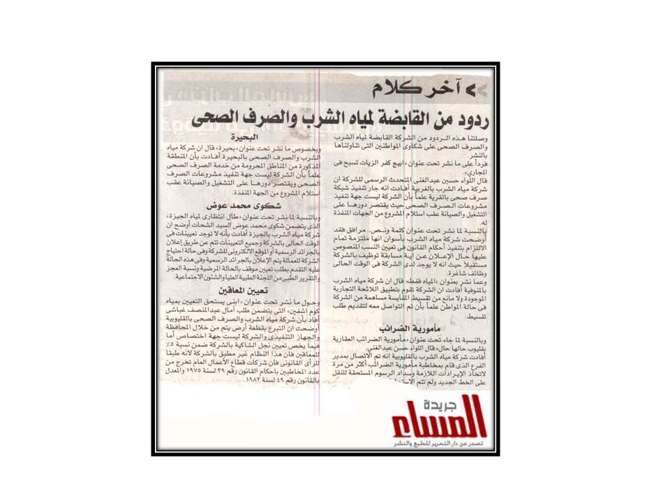آخر كلام : ردود من الشركة القابضة لمياه الشرب والصرف الصحي .