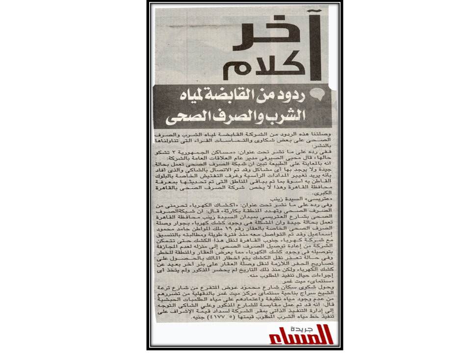 آخر كلام : ردود من القابضة لمياه الشرب والصرف الصحي