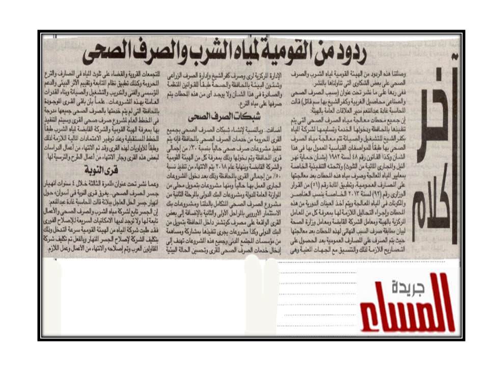 آخر كلام : ردود من القومية للمياه الشرب والصرف الصحي .
