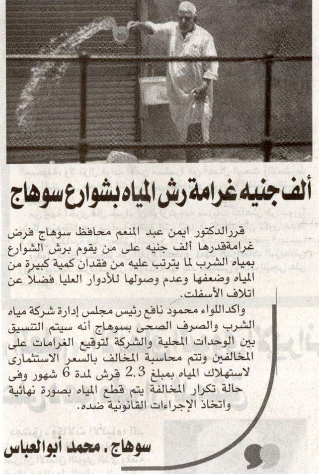 ألف جنيه غرامة رش المياه بشوارع سوهاج