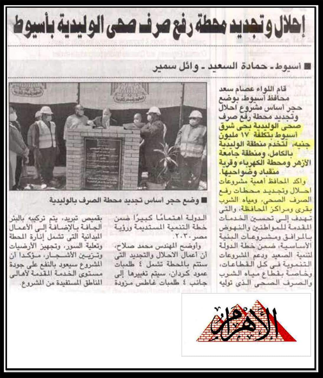 إحلال وتجديد محطة رفع صرف صحي الوليدية بأسيوط .