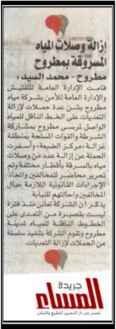 إزالة وصلات المياه المسروقة بمطروح .