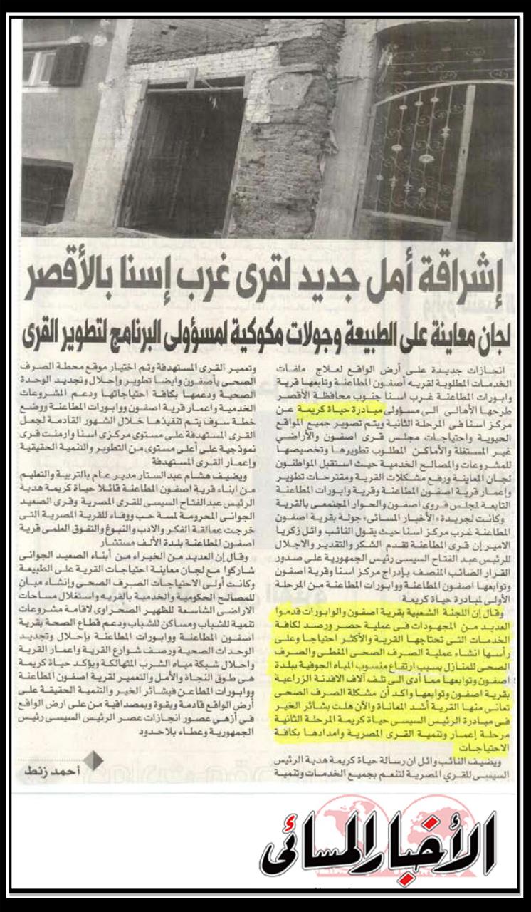 إشراقة أمل جديد لقرى غرب أسنا بالاقصر .