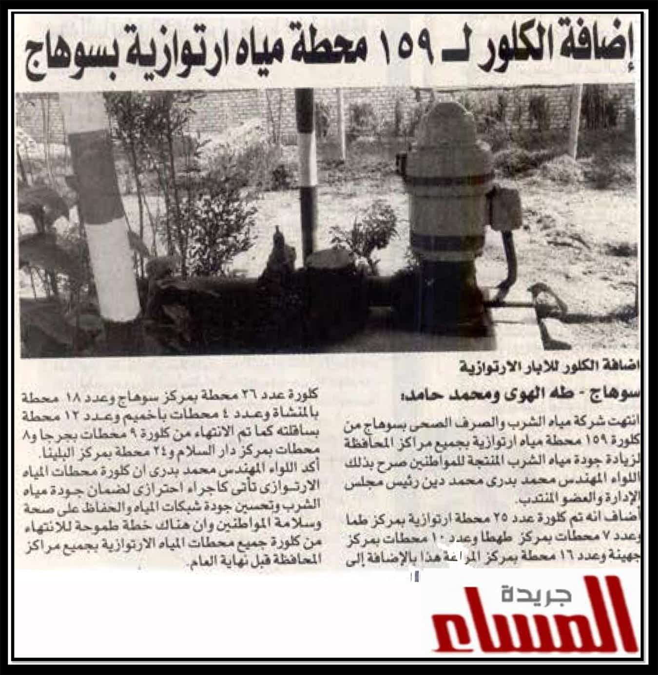 إضافة الكلور لـ 159 محطة مياه ارتوازية بسوهاج .