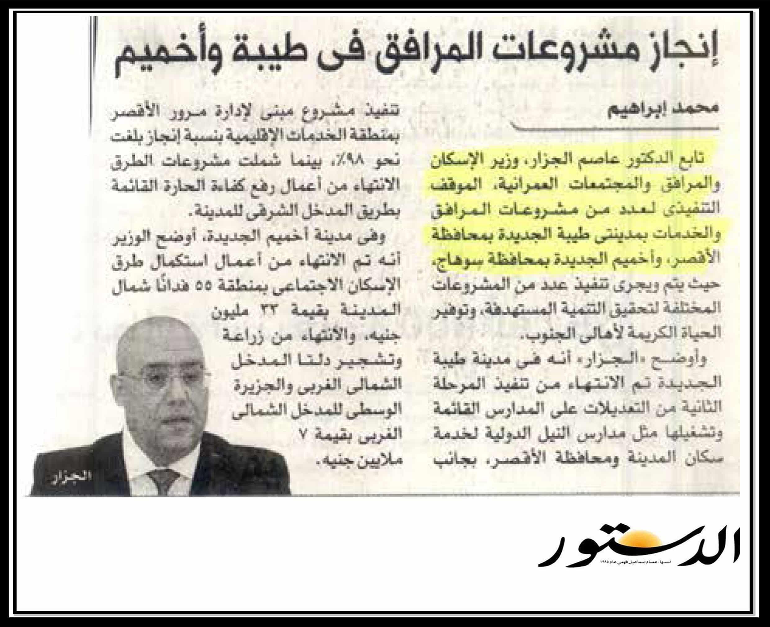 إنجاز مشروعات المرافق في طيبة وأخميم .