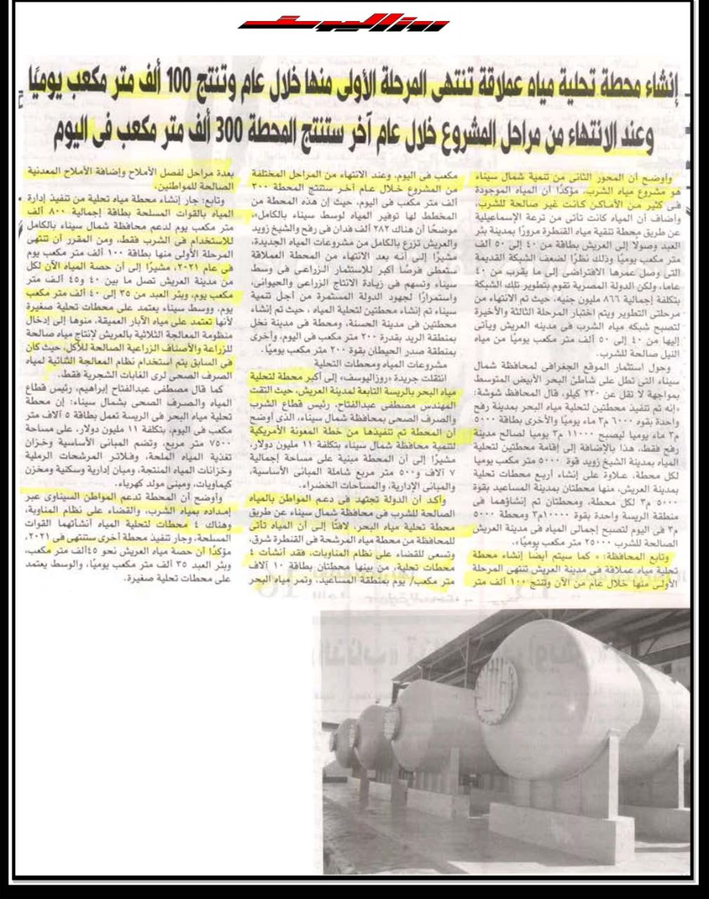 إنشاء محطة تحلية مياه عملاقة تنتهي المرحلة الاولى منها خلال عام وتنتج 100 ألف متر مكعب يوميا .