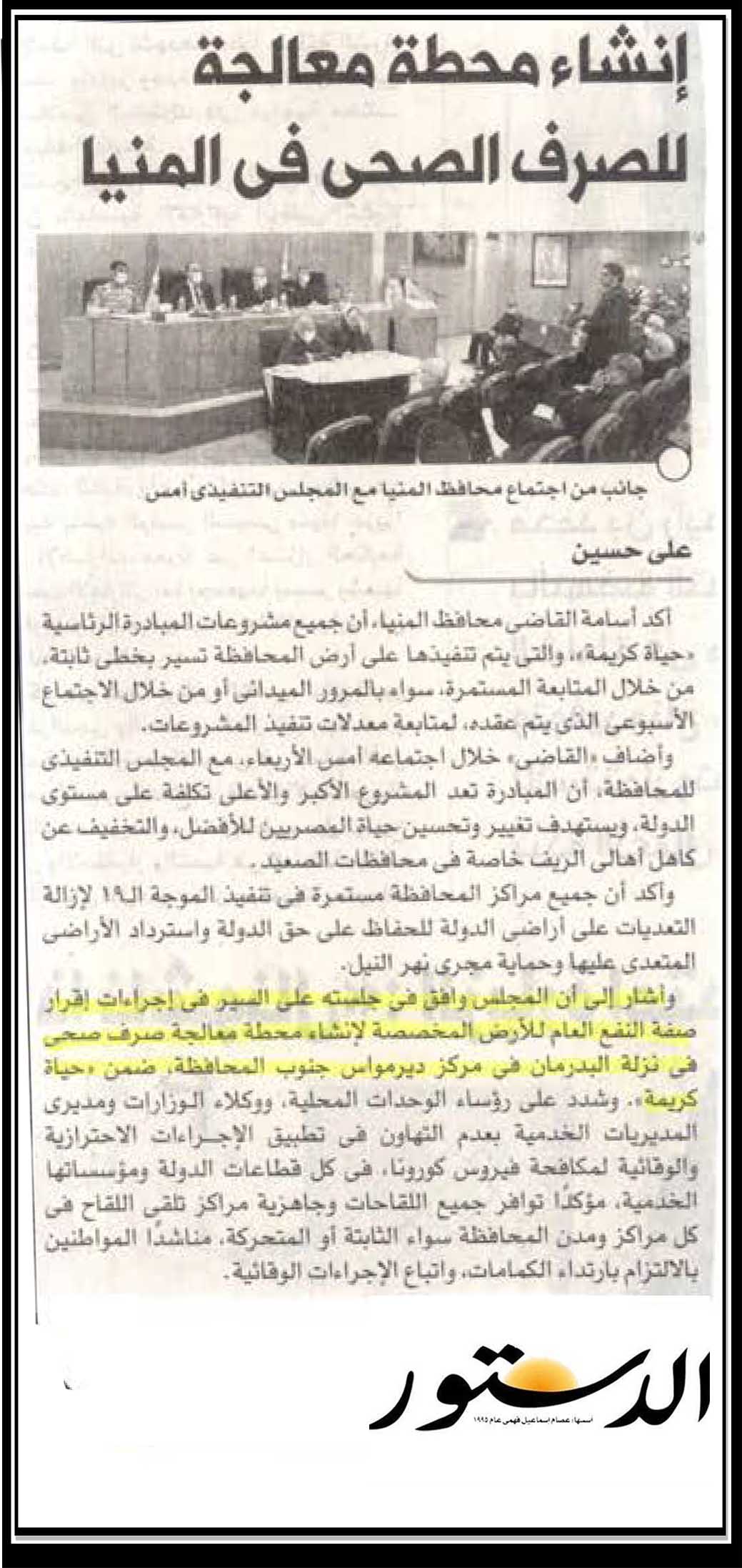 إنشاء محطة معالجة للصرف الصحي في المنيا.