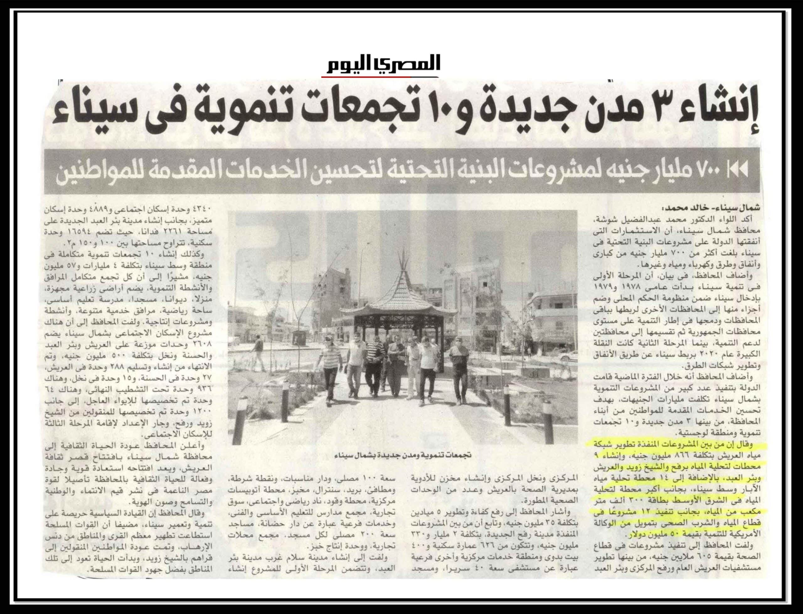 إنشاء 3 مدن جديدة و10 تجمعات تنموية في سيناء .