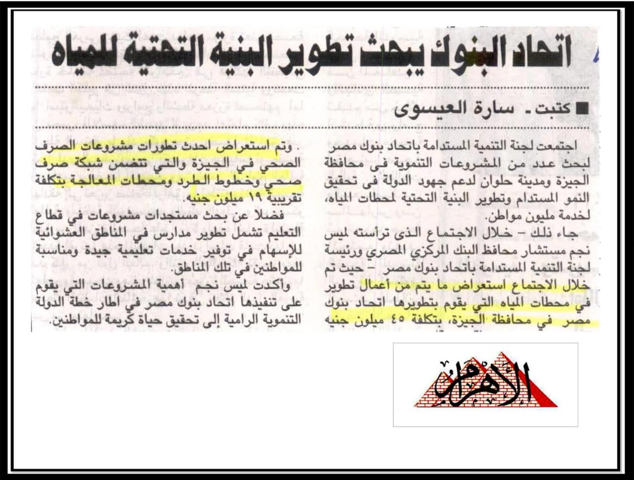 اتحاد البنوك يبحث تطوير البنية التحتية للمياه .