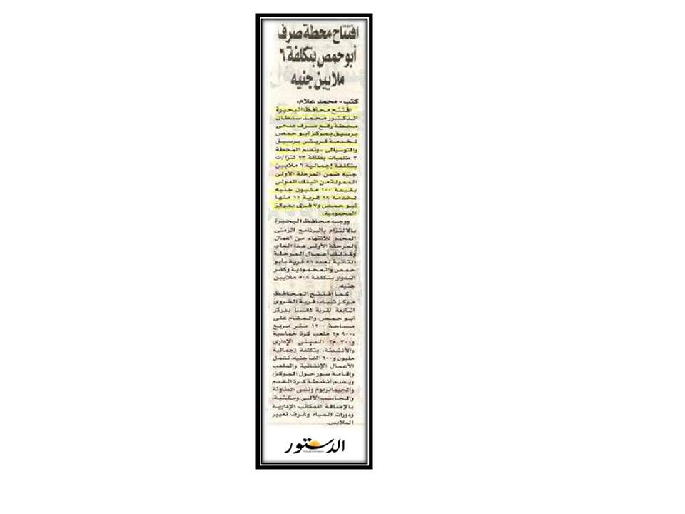افتتاح محطة صرف أبو حمص بتكلفة 6 ملايين جنية …2016/5/7
