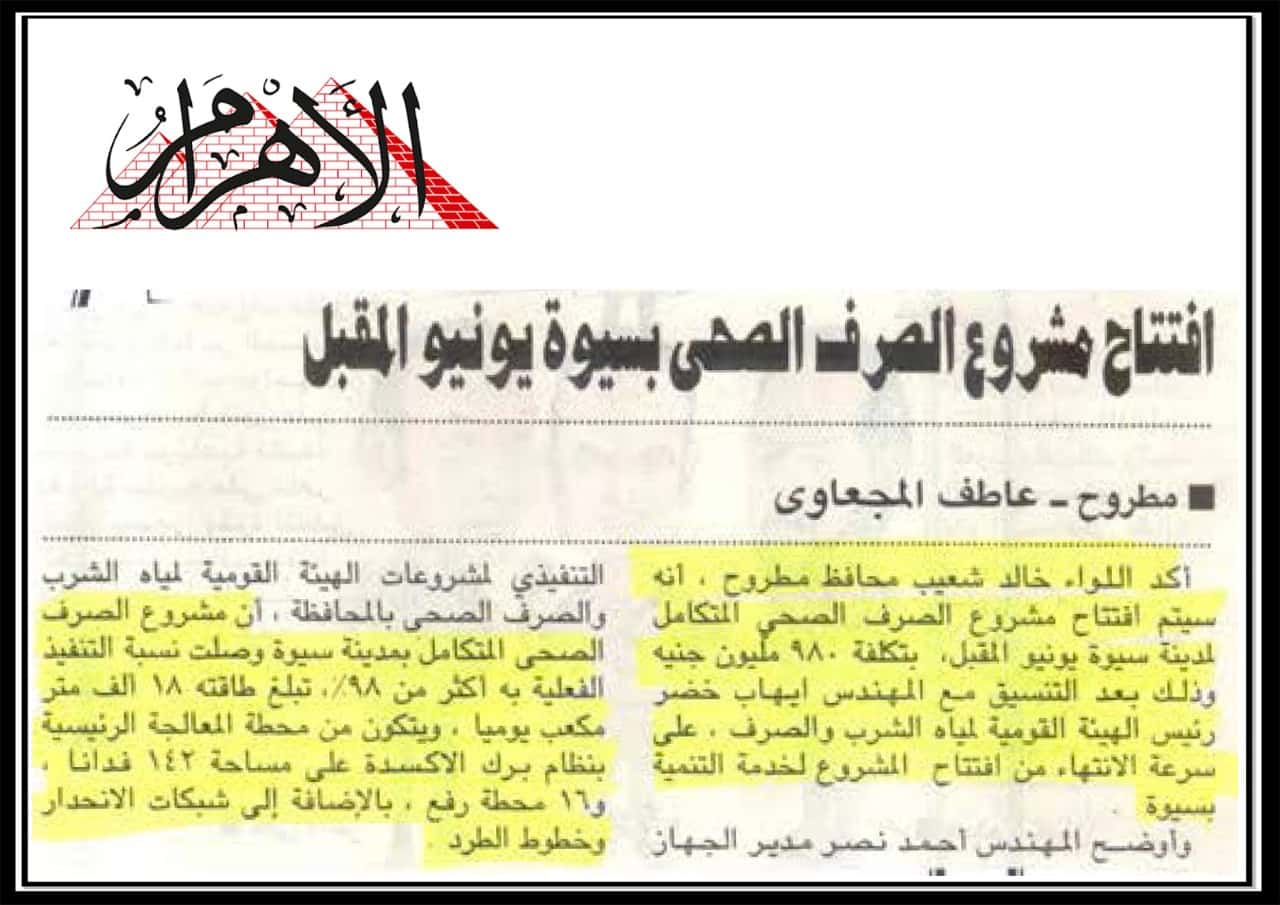افتتاح مشروع الصرف الصحي بسيوه يونيو المقبل.