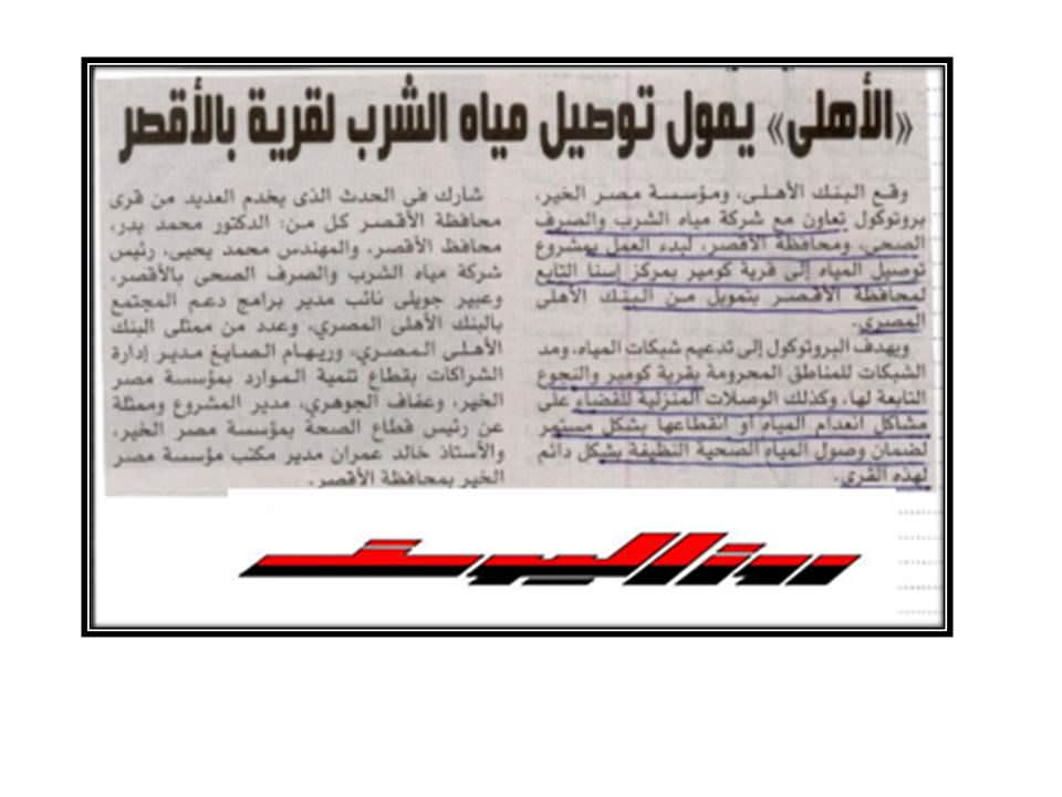 ” الأهلي ” يمول توصيل مياه الشرب لقرية بالأقصر .