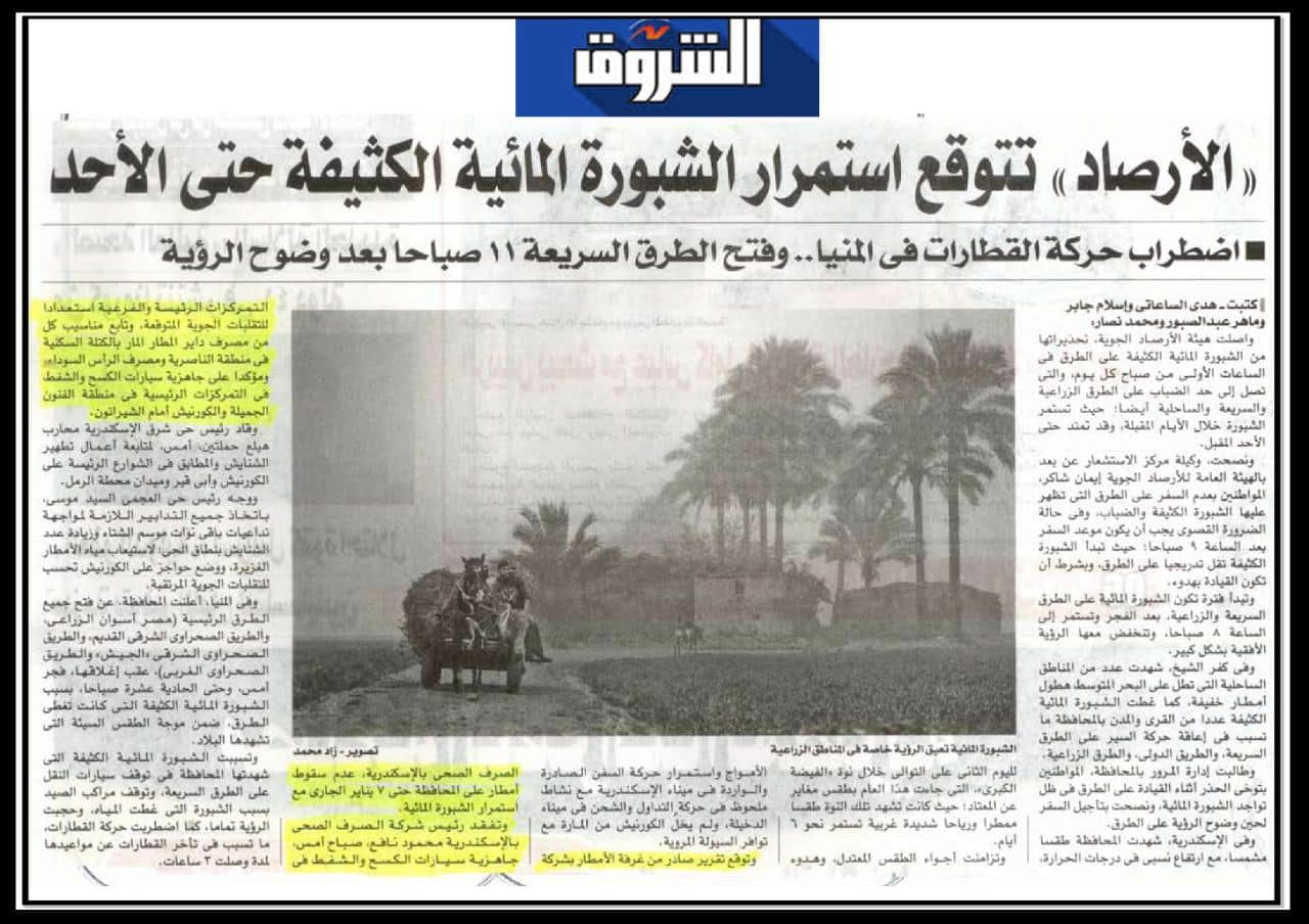 الارصاد …تتوقع استمرار الشبورة المائية الكثيفة حتى الاحد.