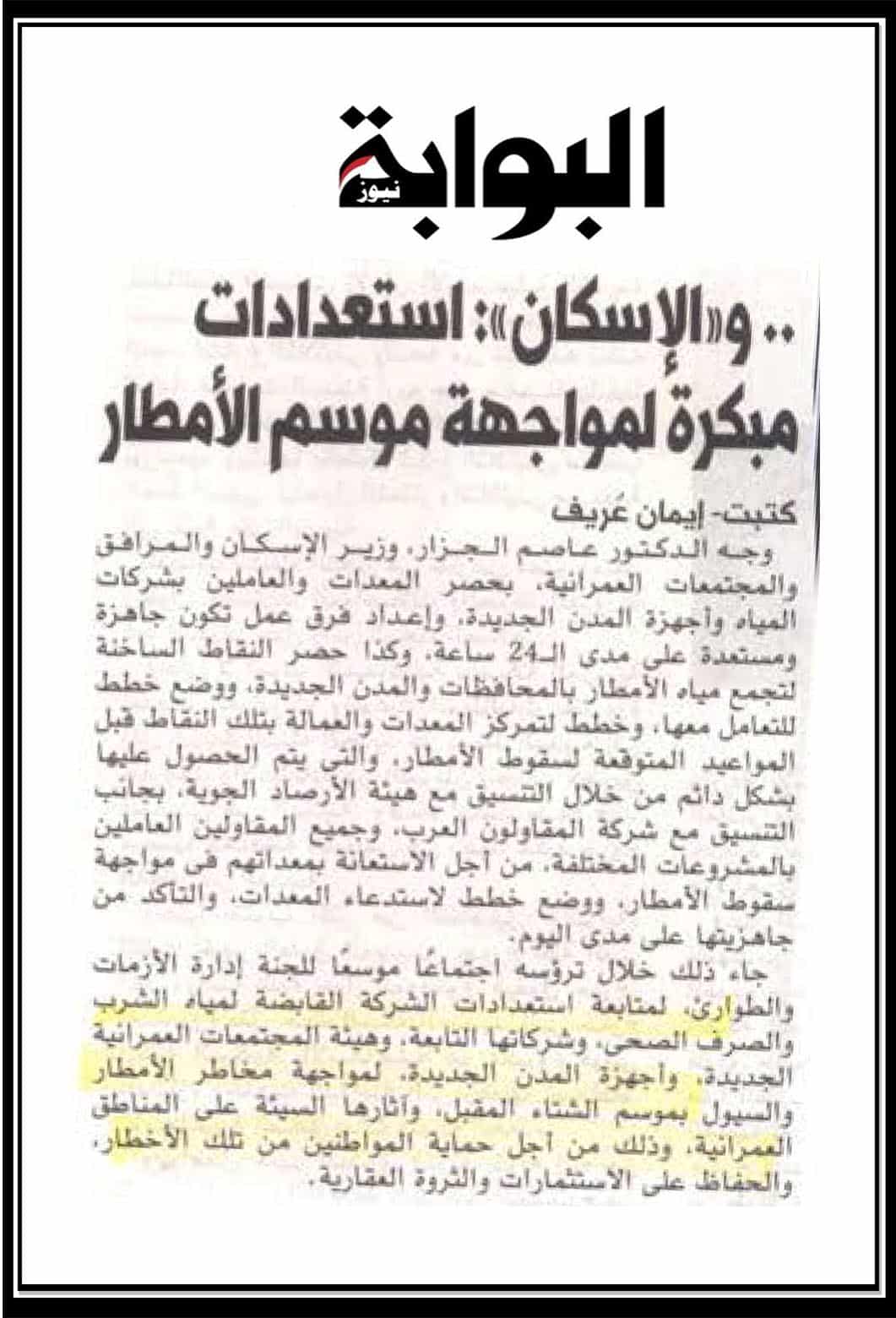 الاسكان: استعدادات مبكره لمواجهة موسم الامطار