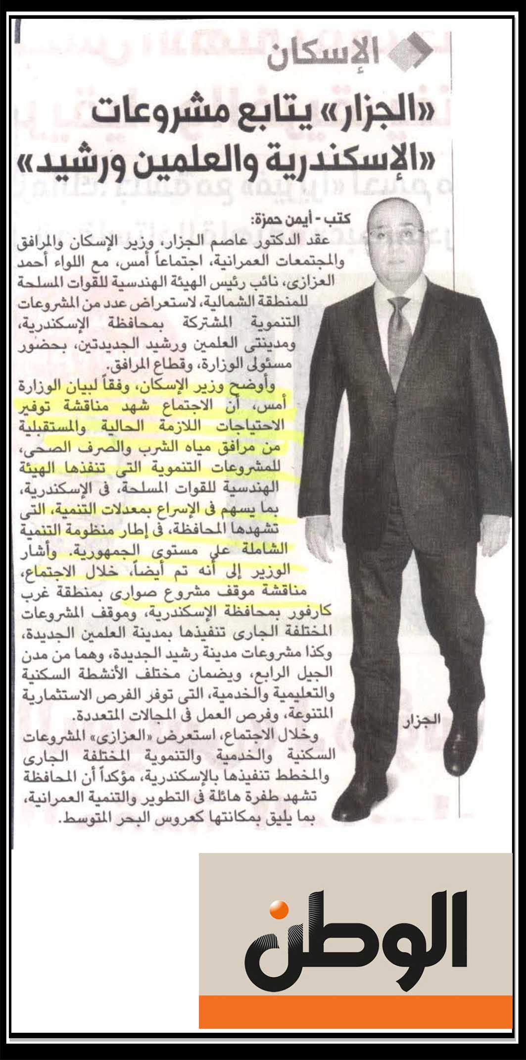 الاسكان : “الجزار” يتابع مشروعات “الاسكندرية والعلمين ورشيد”