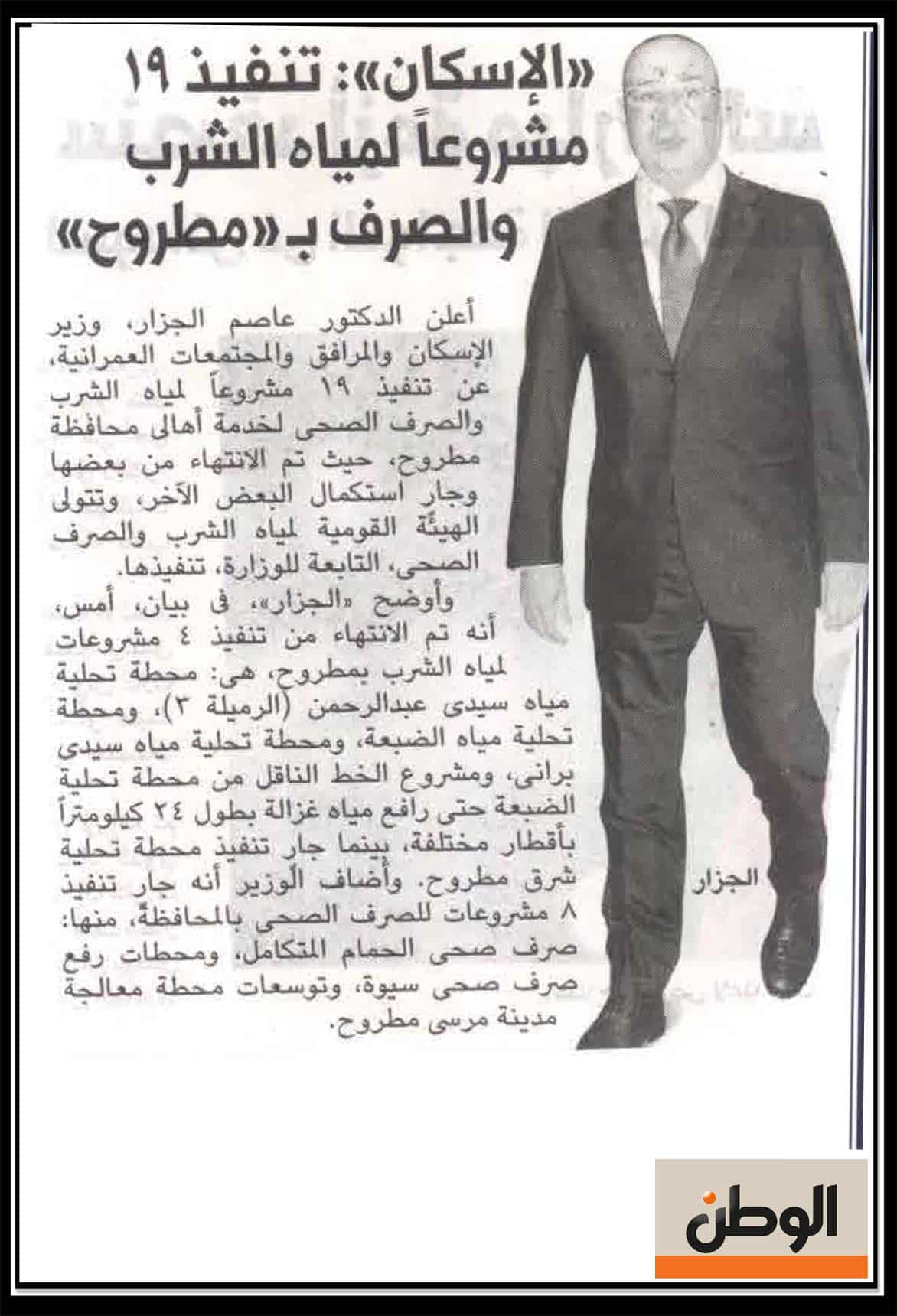 الاسكان : تنفيذ 19 مشروعاً لمياه الشرب والصرف بــ” مطروح ” .