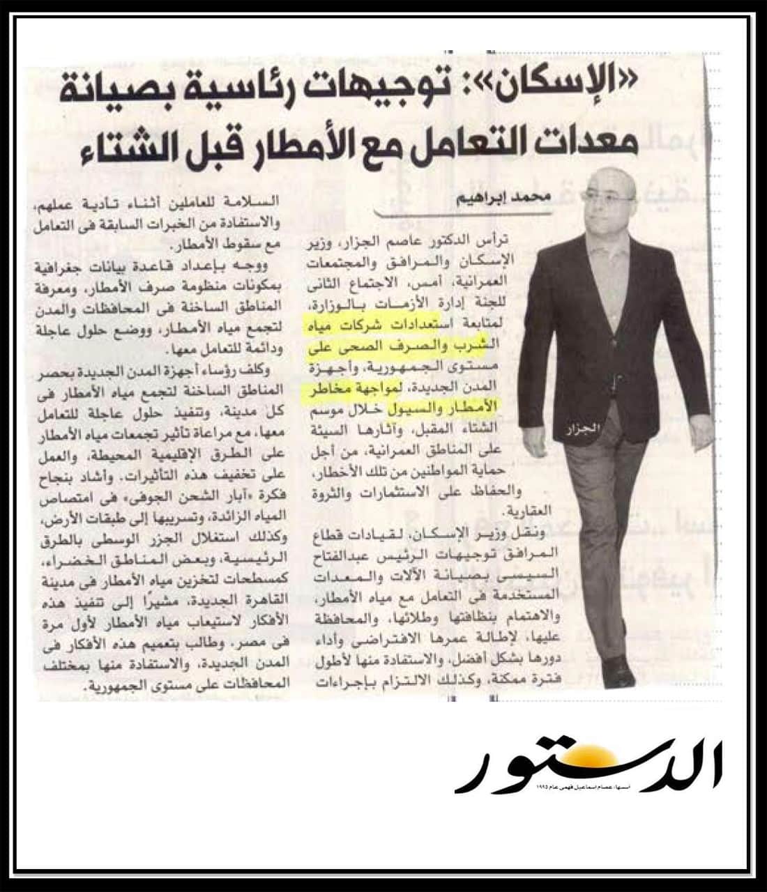 الاسكان: توجيهات رئاسية بصيانة معدات التعامل مع الامطار قبل الشتاء .