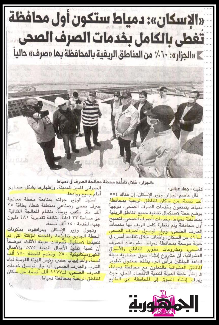 الاسكان .. دمياط ستكون أول محافظة تغطي بالكامل بخدمات الصرف الصحي .