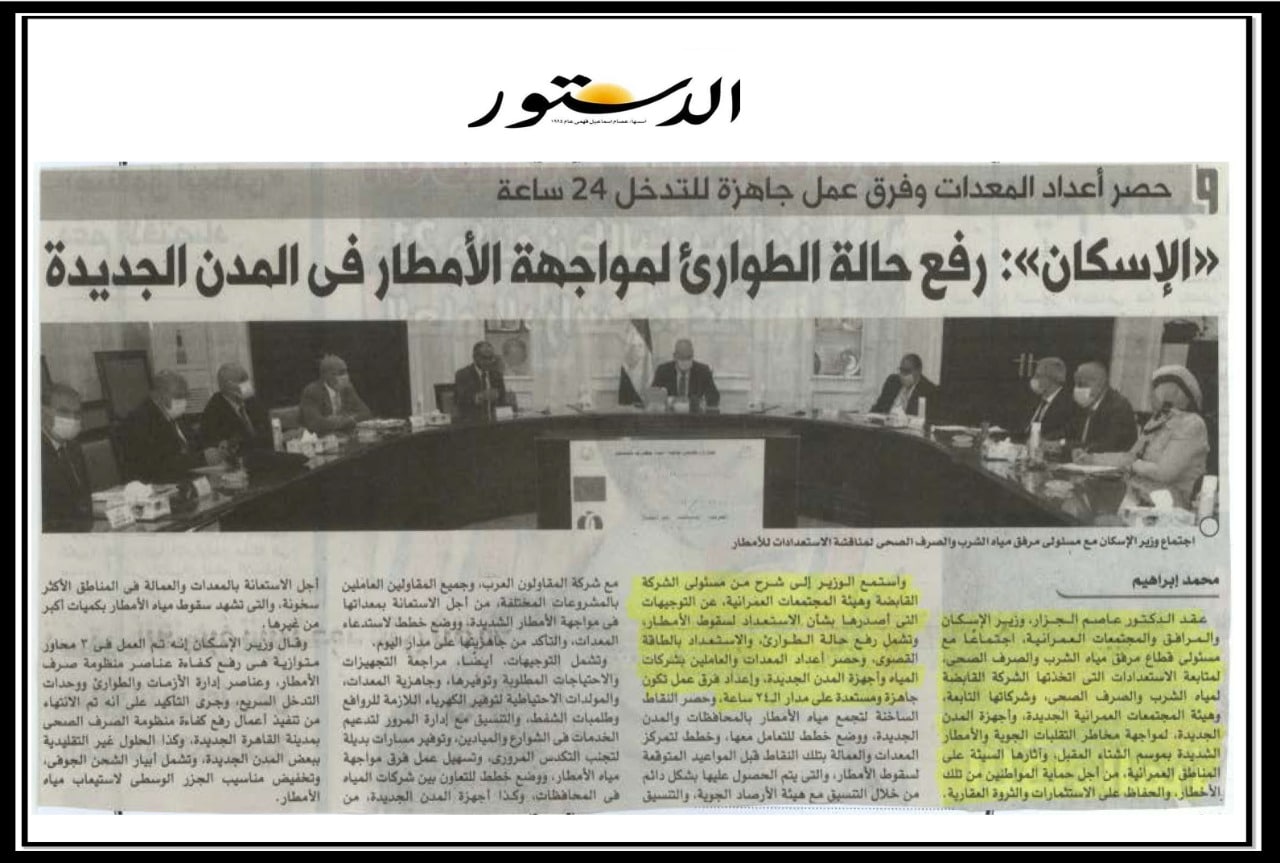 الاسكان: رفع حالة الطوارئ لمواجهة الامطار في المدن الجديدة