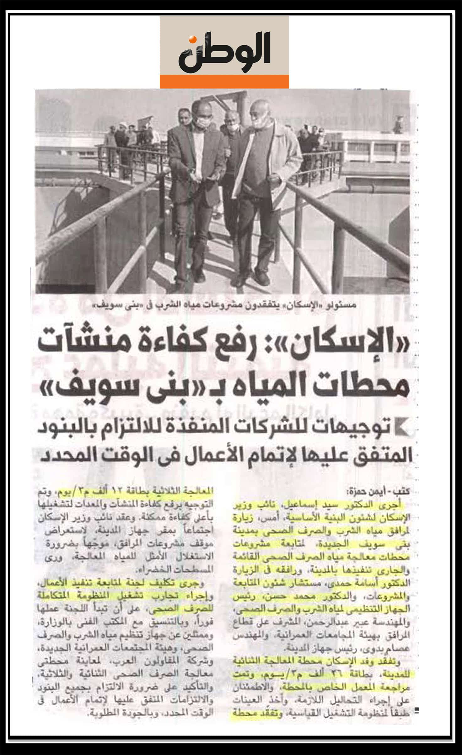 الاسكان: رفع كفاءة منشات محطات المياه ببني سويف