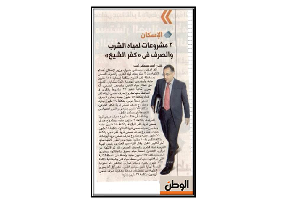 الاسكان : 3 مشروعات لمياه الشرب والصرف الصحي في كفر الشيخ .