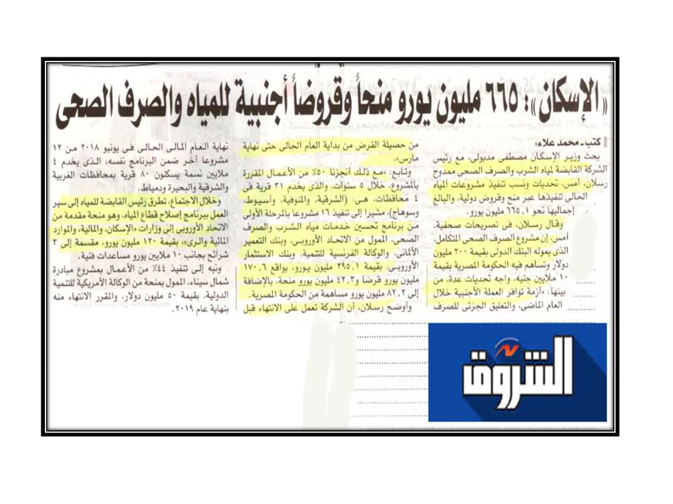 الاسكان : 665 مليون يورو منحاً وقروضاً اجنبية للمياه والصرف الصحي .