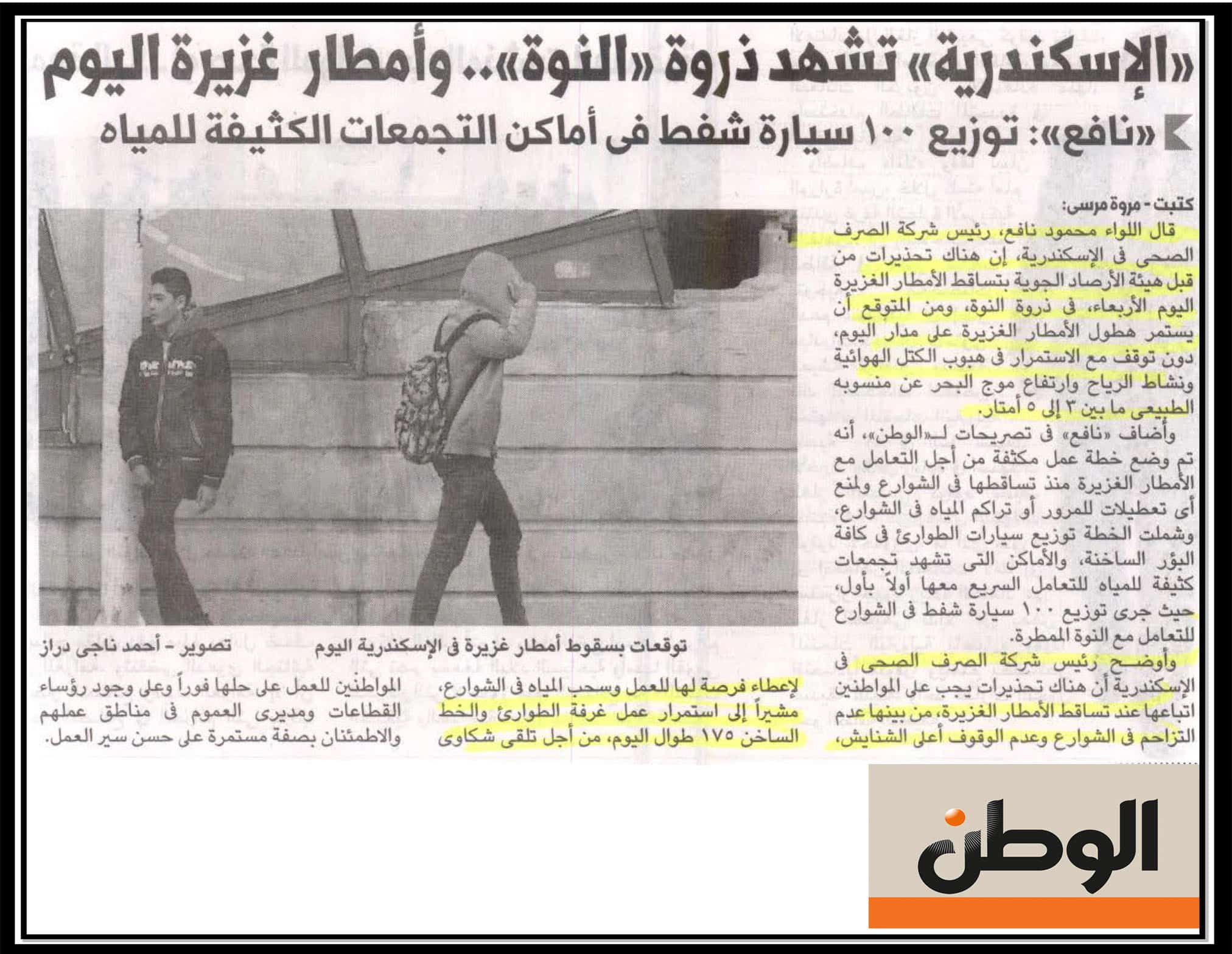 الاسكندرية تشهد ذروة النوة وامطار غزيرة اليوم ” نافع” : توزيع 100 سيارة شفط في أماكن التجمعات الكثيفة للمياه.