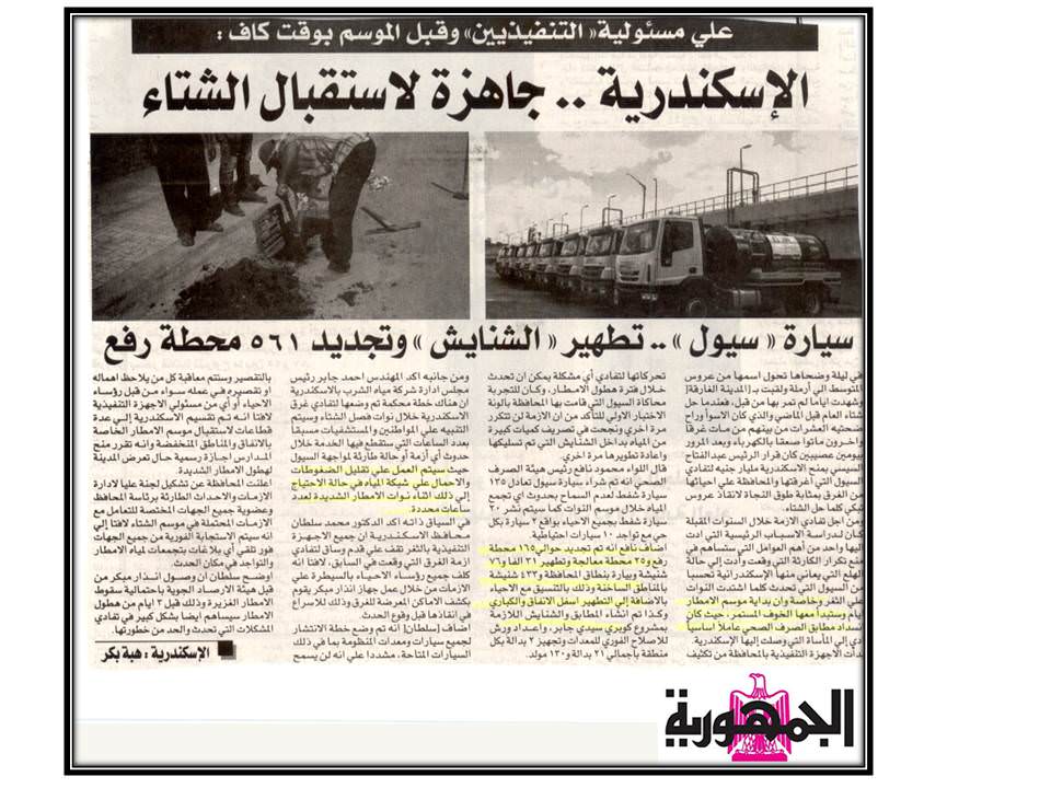 الاسكندرية : جاهزة لاستقبال الشتاء …سيارة (سيول ) تطهير ( الشنايش) وتجديد 561 محطة رفع ….
