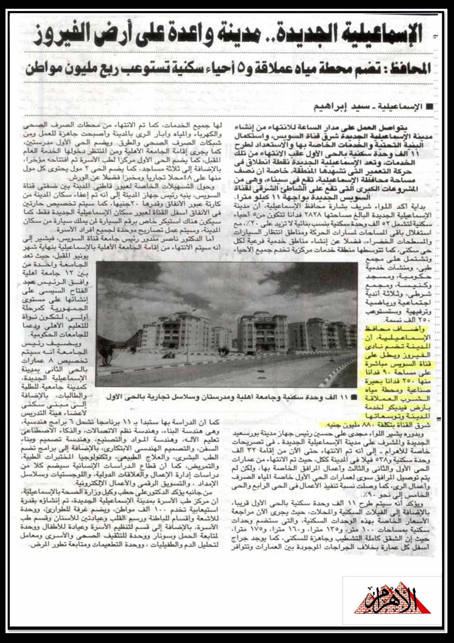 الاسماعيلية الجديدة .. مدينة واعدة على أرض الفيروز .