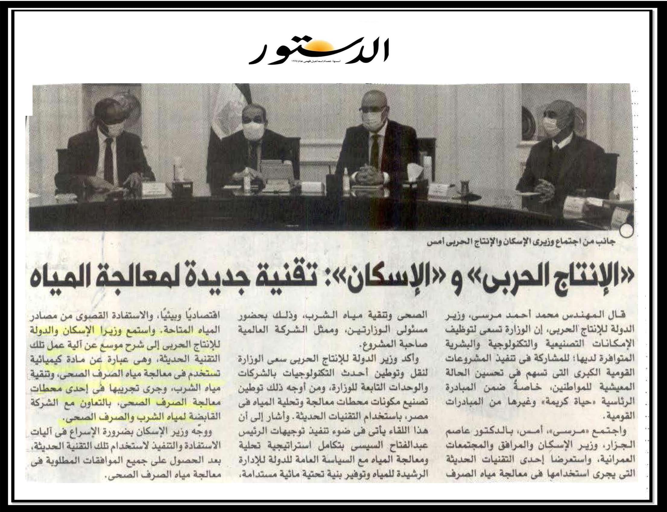 الانتاج الحربي …والاسكان : تقنية جديدة لمعالجة المياه .