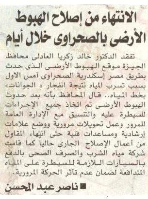 الانتهاء من اصلاح الهبوط الارضى بالصحراوى خلال ايام