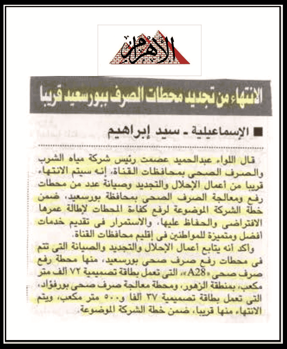 الانتهاء من تجديد محطات الصرف ببور سعيد قريباً.