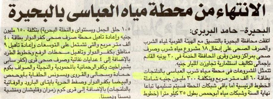 الانتهاء من محطة مياه العباسى بالبحيرة