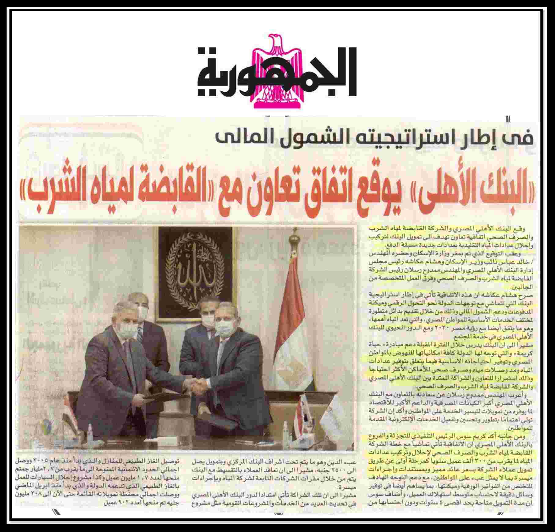البنك الاهلي يوقع اتفاق تعاون مع القابضة لمياه الشرب