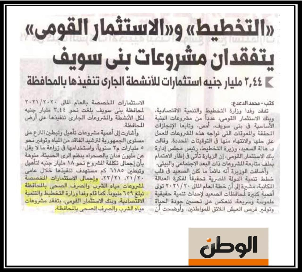 التخطيط و الاستثمار القومي يتفقدان مشروعات بني سويف .