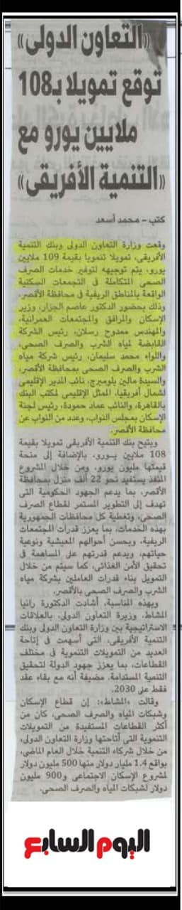 التعاون الدولي توقع تمويلا بــ108 ملايين يورو مع البنك الافريقي .