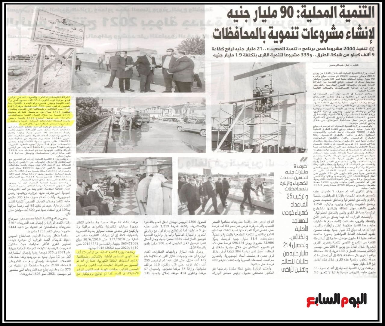 التنمية الحلية : 90 مليار جنية لانشاء مشروعات تنموية بالمحافظات .