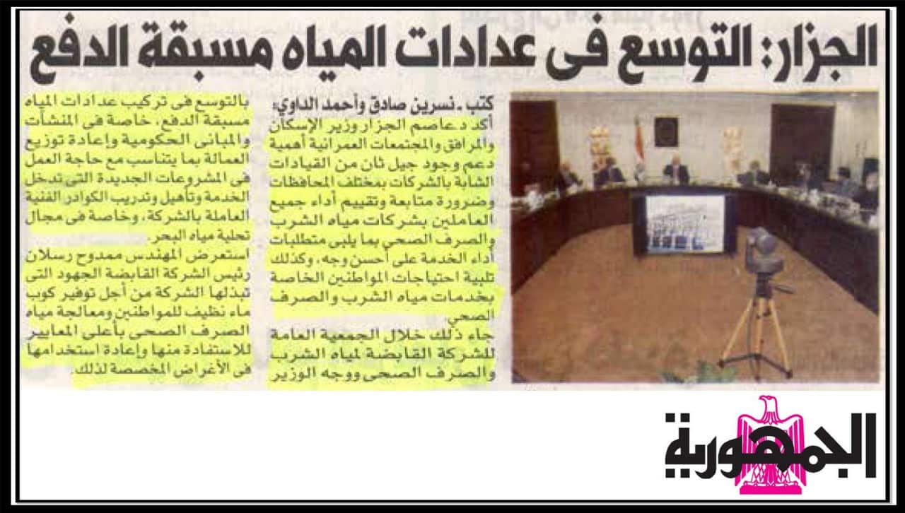الجزار : التوسع في عدادات المياه مسبقة الدفع .