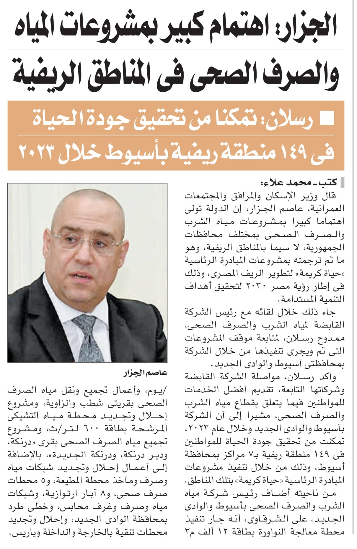 الجزار : اهتمام كبير بمشروعات المياه والصرف الصحي في المناطق الريفية.