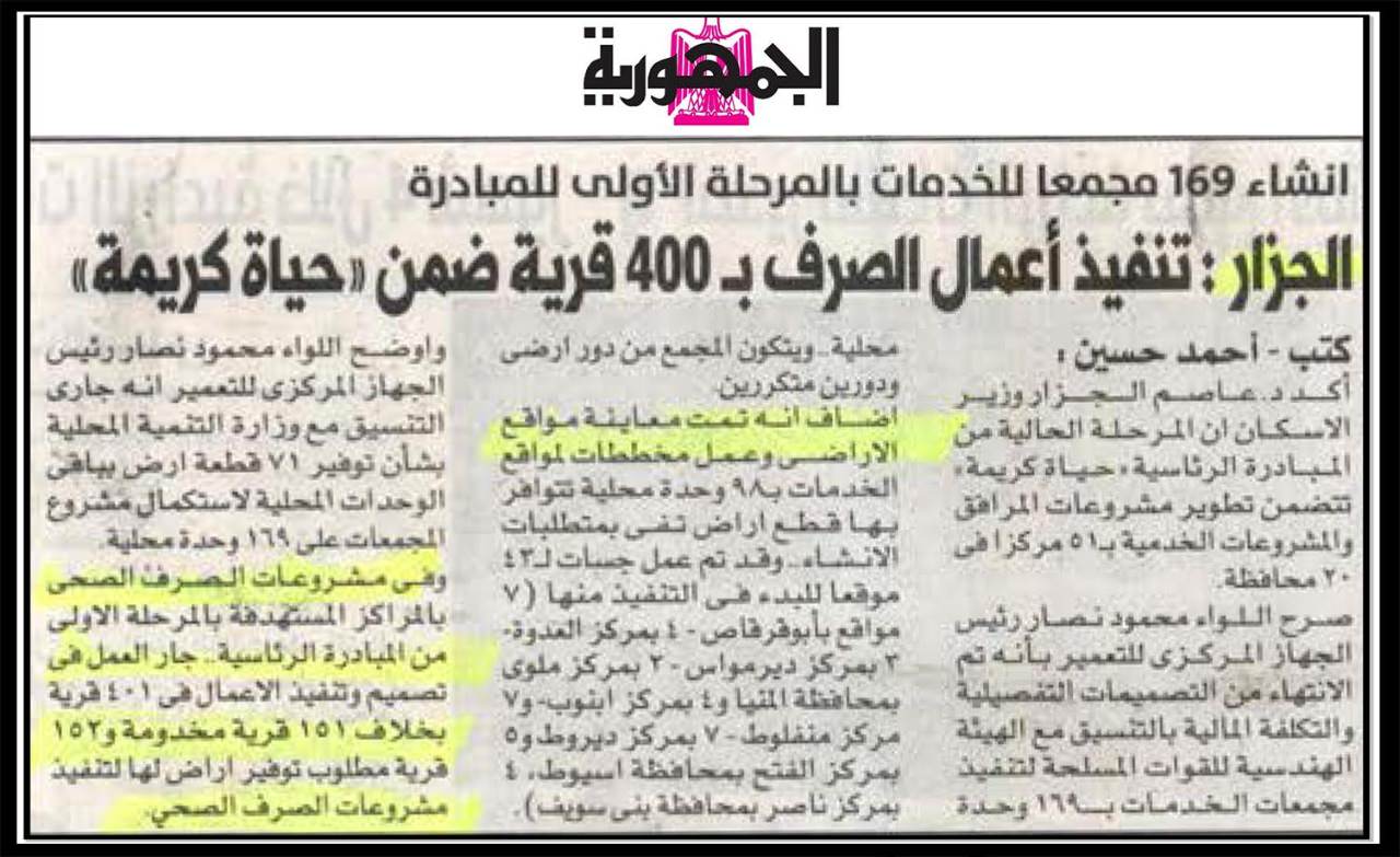 الجزار: تنفيذ اعمال صرف ب ٤٠٠ قرية ضمن مبادرة حياة كريمة