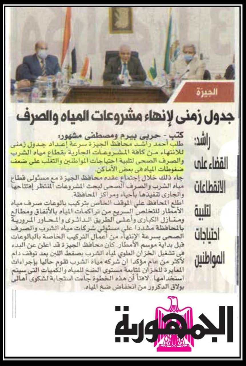 الجيزة : جدول زمني لانهاء مشروعات المياه والصرف الصحي .