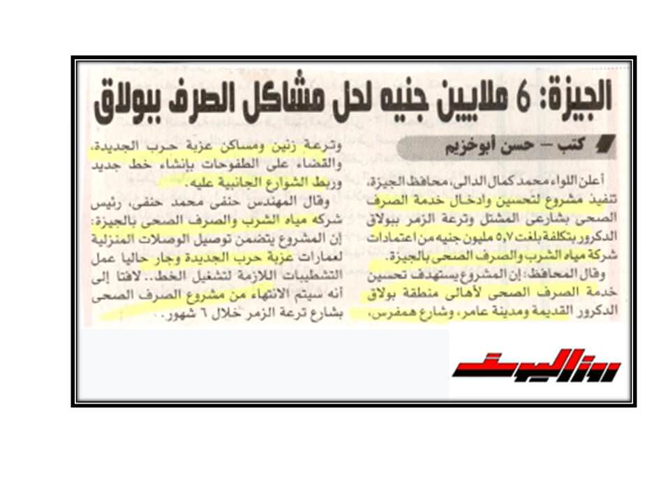 الجيزة : 6 ملايين جنية لحل مشاكل الصرف ببولاق .
