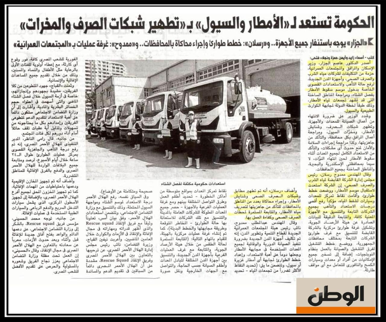 الحكومة تستعد لــ الامطار والسيول بتطهير شبكات الصرف والمخرات .