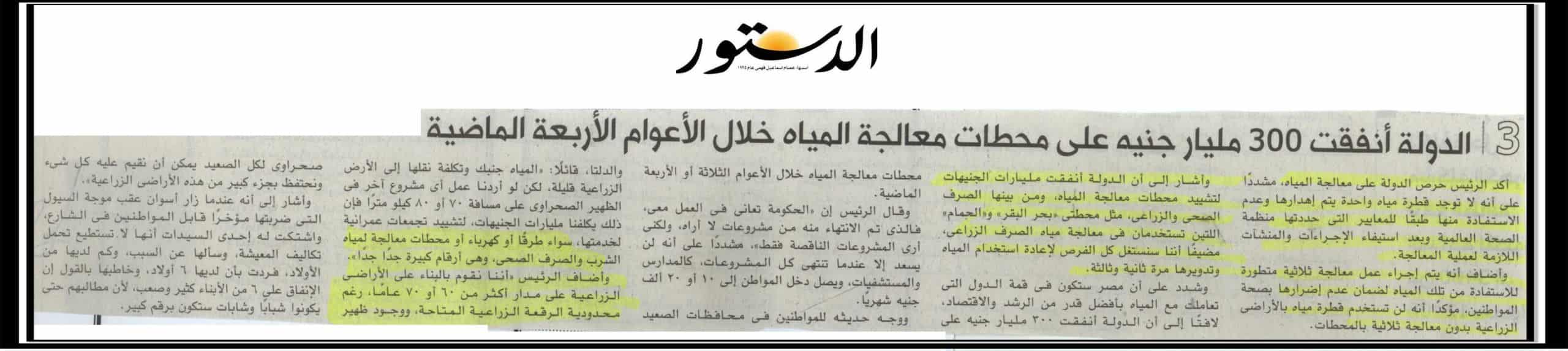 الدولة انفقت 300 مليار جنية على محطات معالجة المياه خلال الاعوام الاربعة الماضية