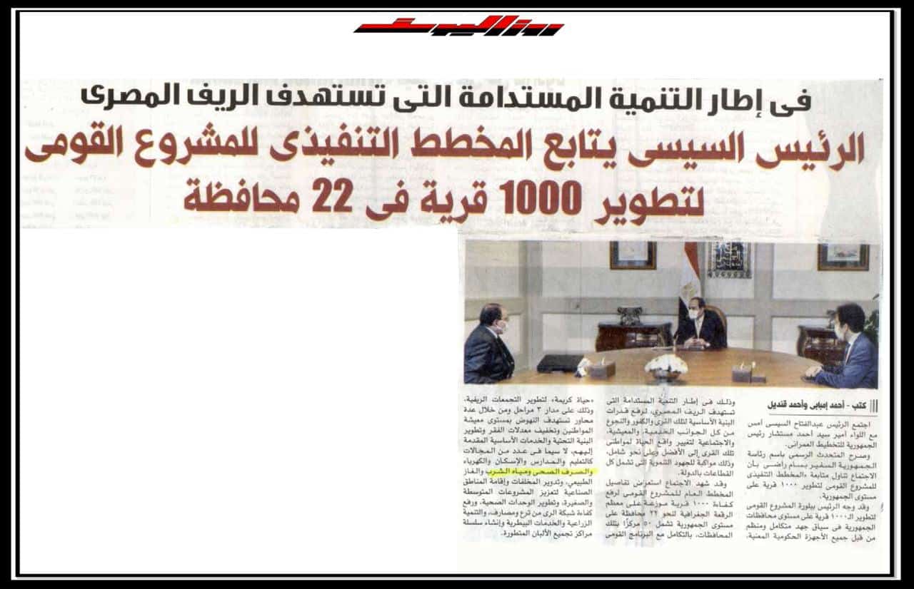 الرئيس السيسي يتابع المخطط التنفيذي للمشروع القومي لتطوير 1000 قرية في 22 محافظة.