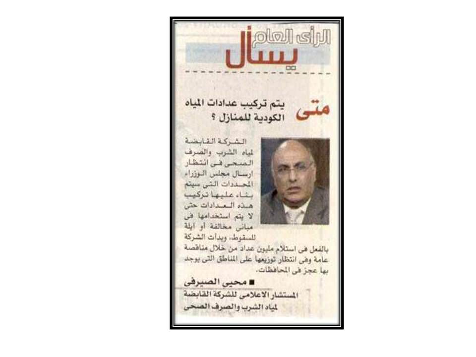 الراي العام يسأل :متى يتم تركيب عدادات المياه الكودية للمنازل ؟….2016/2/23